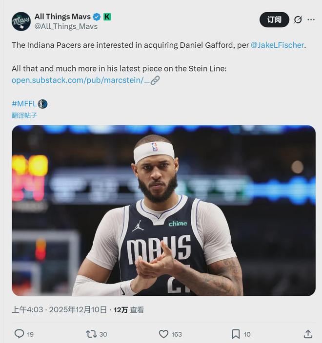 北京时间12月10日,NBA名记Shams报道,独行侠超市正式开张,浓眉、加福德、克莱和拉塞尔均被摆上货架,独行侠愿意听取一切报价。另据NBA记者Jake Fischer报道,步行者有意加福德。值得一提的是,休赛期独行侠刚跟加福德续约。