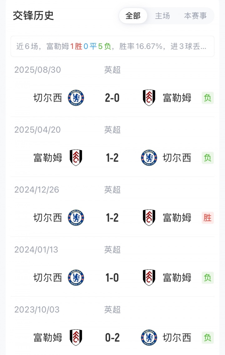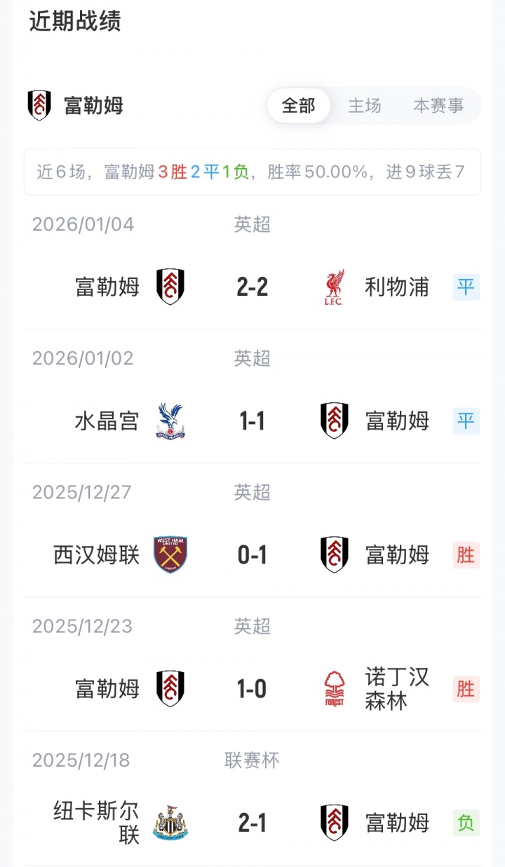 富勒姆首发:1-莱诺、31-迪奥普、5-约阿希姆·安诺森、15-昆卡、21-卡斯塔涅、16-博格、10-凯尔尼、33-罗宾逊、8-哈里-威尔逊、32-史密斯·罗、7-希门尼斯